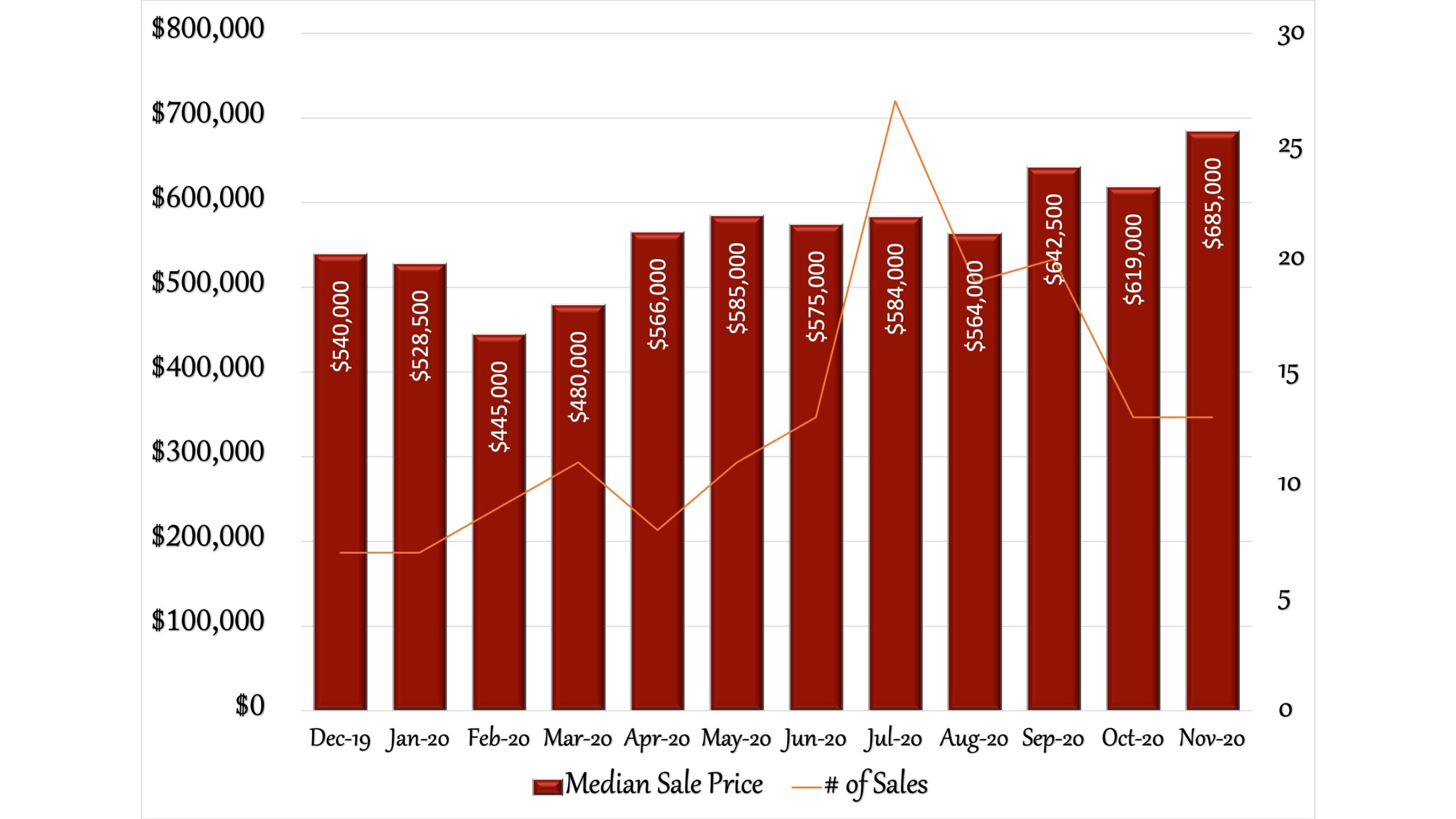 November was another great month for home sales prices. Year-to-date median sales prices continued to be on the rise for most local towns when compared to 2019’s first 11 months. All towns show increases in median sales price, with many over 10%.