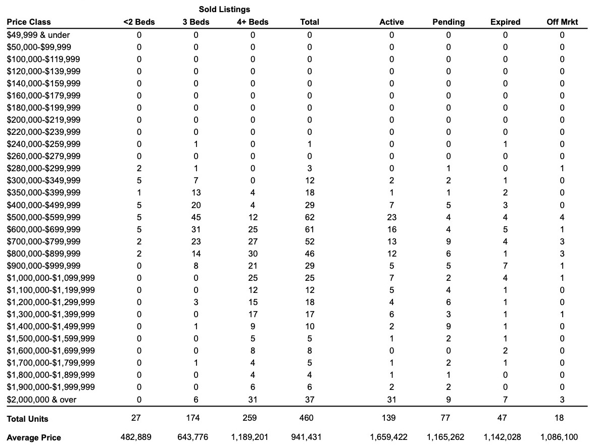 | 423 Lucille St | Colonial | 3,570 | 4 | 5/0 | $874,900 | $839,900 | $792,000 | 91% | 123 |