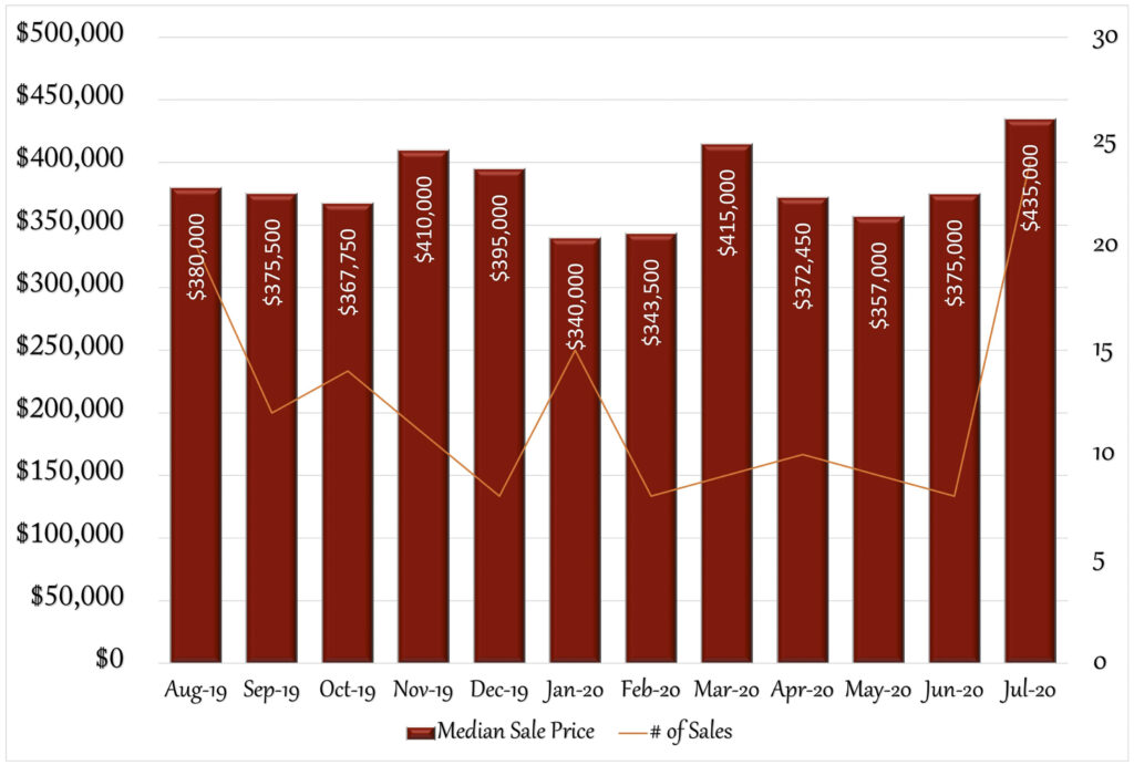2020 continues to be a strong year for the area real estate markets when compared to 2019’s first 7 months. Most towns show increases in median sales price. Easton, which is still down 1.03% actually improved from last month’s number, which was down 11.52%.