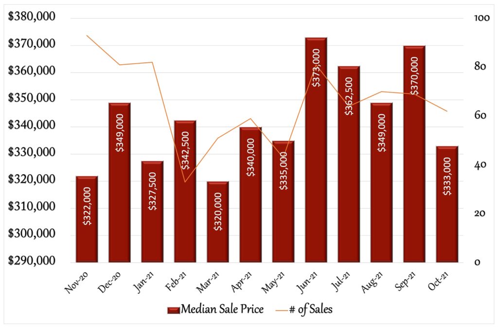 The real estate market in Stratford experienced a slowdown in October when compared to the previous month’s gains. Since June’s peak median sales price of $373,000, prices have been declining each month, save for September. The median sales price in October was down to $333,000 for a single family home. That puts the year to date increase in home values at 1.68% and the 12 month increase at 4.23%. Still, home values in Stratford have been increasing overall quite well since March of 2020, when the median sales price was $245,000. New listings in October were about the same as in September, although the days on market increased from 24 days to 36 days, which illustrates more caution amongst buyers. Stratford is still in a strong seller’s market as the months of supply was at 2.1 months (indicating low inventory), and houses sold on average for a little over 101% of asking price. Pending sales are down slightly from September which could point to another stable month for November. October interest rates still remained fairly low at 3.09% by the end of the month for a 30 year fixed loan, and have dropped to just under 3% by the beginning of November. Experts predict rates to reach the mid 3’s in the coming year, which although higher than most of 2021, still represents an excellent rate for buyers and refinancers and may contribute to a continued strong real estate market in the months ahead. For anyone considering a move, this is still a great time to sell a house in Stratford. Do you know anyone looking for more information about their real estate market? I’d be happy to help.