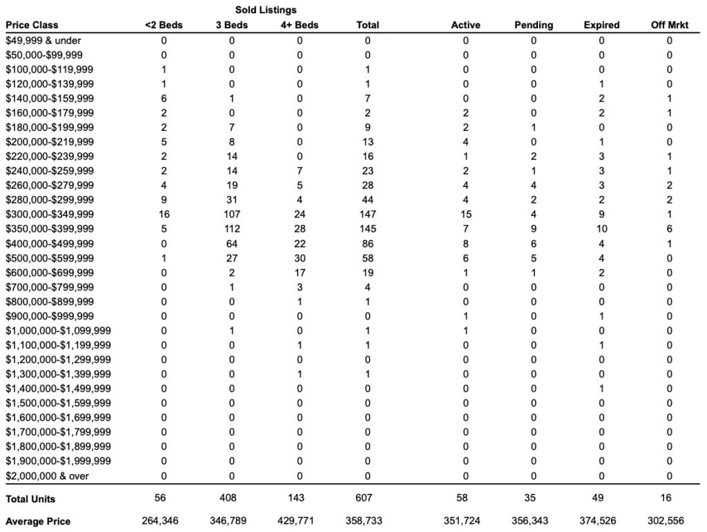 | 50 Adams St | Ranch | 1,956 | 2 | 1/1 | $259,000 | $259,000 | $270,000 | 104% | 48 |